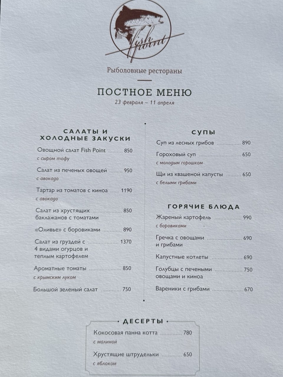В меню ресторана собраны более 30 любимых блюд разных кухонь мира: здесь и сациви из осетра, и спагетти Карбонара, и Fish&Chips - мы уверены, что каждый найдет себе блюдо под настроение, а обширная гриль-карта даст ответ на самый частый запрос загородного отдыха: пожарить что-то на открытом огне. Мы готовим на новой огромной гриль-станции Grillvett Paragon с возможностью жарки, копчения и томления, и предлагаем на выбор не только рыбу или морепродукты, но и ряд мясных позиций на компанию.